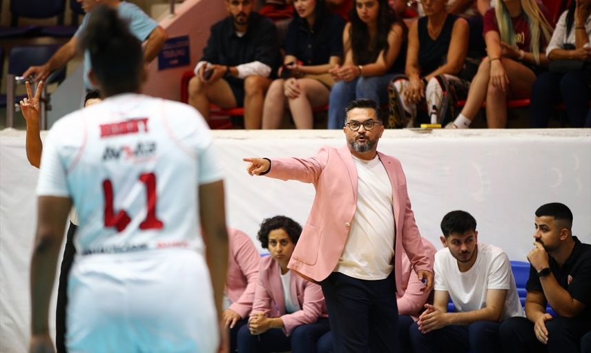 Halkbank Türkiye Kadınlar Basketbol Ligi ekiplerinden Adana Nova Basketbol'un teknik heyeti, meme kanserinde erken teşhisin önemine dikkati çekmek amacıyla iç saha maçlarında pembe ceket giyiyor. Başantrenör Ender Ünlü (ortada) oyuncularına taktik verdi.