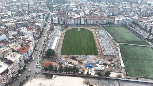 Depreme dayanıksızlığı nedeniyle yıkılan Adnan Menderes Stadyumu'nun yerine yapılan 6 bin kişilik yeni stadyumda FIFA standartlarında çim serimi tamamlandı.