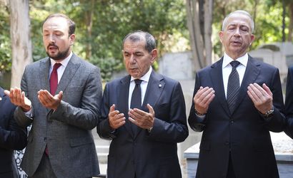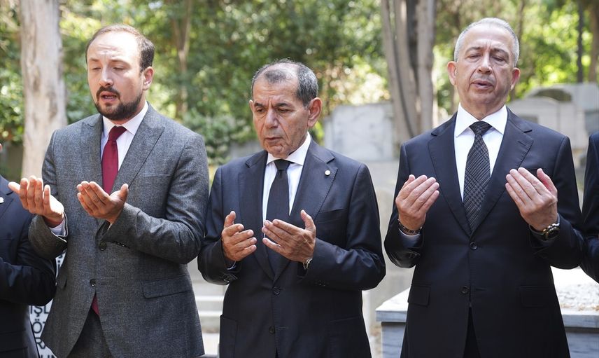 Galatasaray Kulübünün kurucusu ve Türk sporunun öncü isimlerinden Ali Sami Yen, vefatının 74. yıl dönümünde kabri başında anıldı. Feriköy Mezarlığı'ndaki anma törenine Galatasaray Kulübü Başkanı Dursun Özbek (sağ 3), divan kurulu başkanı Aykutalp Derkan (sol 2) ile sarı-kırmızılı kulübün yönetim kurulu üyeleri katıldı.