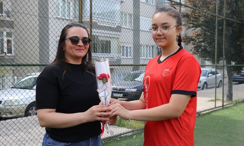 Futbolcular, sabah saatlerinde Bahçeleriçi Semt Sahası'nda antrenman gerçekleştirirken, anneleri de kızlarını desteklemek için tesislere geldi. Antrenman esnasında, futbolcular annelerinin önünde diz çökerek onlara çiçek takdim etti.