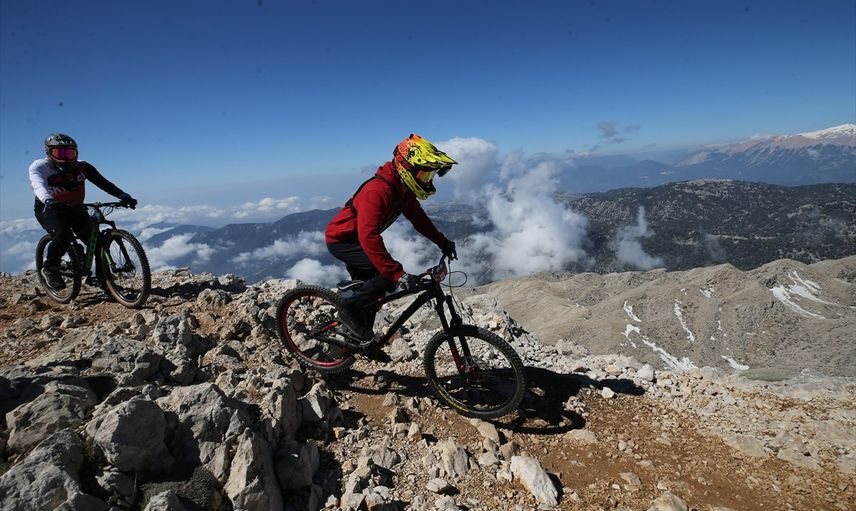 Antalya'nın Kemer ilçesinde bu yıl 3'üncüsü düzenlenen Sky To Sea Dağ Bisikleti Yarışı başladı. Tahtalı Dağı'nın 2 bin 365 metre karlı zirvesinden başlayan yarışmada sporcular, 34 kilometrelik zorlu parkuru geçerek Kemer sahilindeki bitiş çizgisine ulaşmak için mücadele edecek.