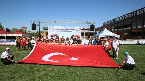 Aşırtmalı Aba Güreşi Türkiye Şampiyonası, Gaziantep Şahinbey Geleneksel Sporlar Merkezi'nde başladı; 505 sporcu dört kategoride mücadele ediyor.
