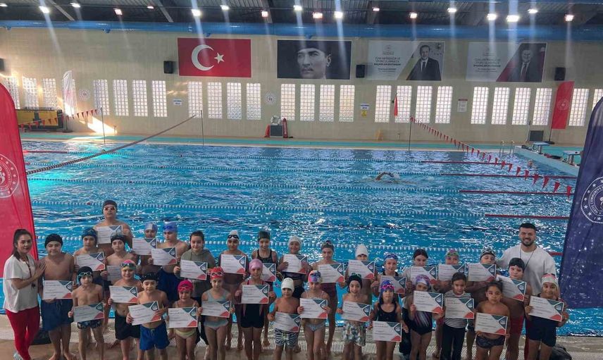 Aydın’ın Efeler ilçesindeki ADÜ Yüzme Havuzunda düzenlenen eğitimleri tamamlayan minikler, verilen törenle sertifikalarına kavuştu. Son 2 ay içinde 200 çocuk yüzme öğrenirken, proje yoğun ilgi görüyor.