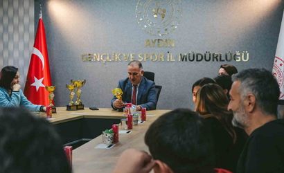 Aydın'a madalyalarla dönen sporcular, Aydın Gençlik ve Spor İl Müdürü Serhat Yığmatepe'yi ziyaret etti. Ziyarette dereceye giren takım ve ferdi sporcular ile antrenörler yer aldı.