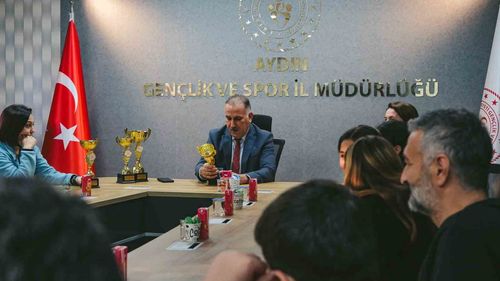 Aydın'ı İzmir'de temsil eden Hemsball sporcuları 4 kupa ve 16 madalya ile döndü; Gençlik Spor İl Müdürlüğü'nde şampiyonluk pastası kesildi.