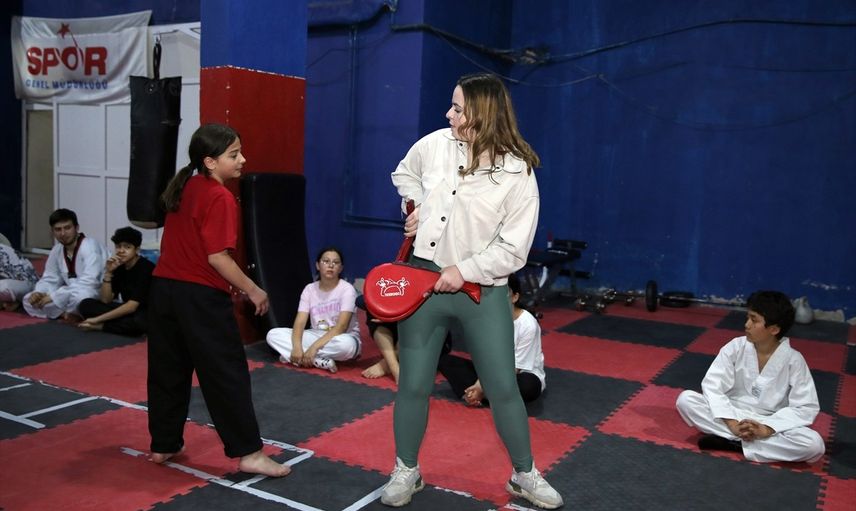 Tekvando milli takımı antrenörü İbrahim Yiğit ile kızı Dilek, Niğde'de özel bir spor salonunda tekvando ve kick boks branşlarında yeni sporcular yetiştiriyor.