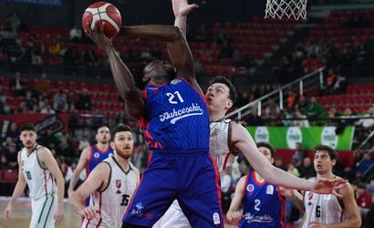 Türkiye Sigorta Basketbol Süper Ligi 16. hafta mücadelesinde Karşıyaka ile Bahçeşehir Koleji, Mustafa Kemal Atatürk Karşıyaka Spor Salonu'nda karşılaştı. Bir pozisyonda Karşıyaka'dan Mehmet Efe Demirel (17) ile Bahçeşehir Koleji’nden Tai Osazeeonmen Odiase (21) mücadele etti.