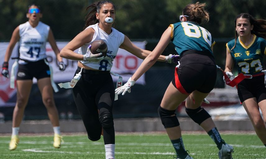 Amerikan futbolunun bir çeşidi olarak bilinen bayrak futbolu, ABD'de büyük ilgi görmekte ve Türkiye Ragbi Federasyonu'na yaklaşık iki yıl önce katıldı. Takımlar 5 oyuncudan oluşuyor ve temasın sınırlı olduğu bu oyunda, oyuncuların belinde bağlı olan bayrağın çekilmesiyle oyun duruyor.