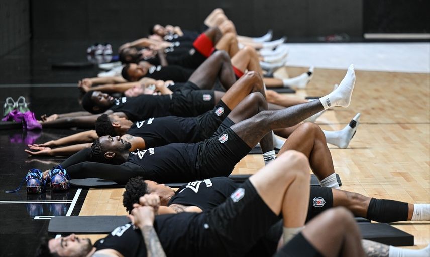 Antrenmandan önce Özkan Arseven, başantrenör Dusan Alimpijevic ve siyah-beyazlı oyuncularla salonun ortasında bir araya gelerek kısa bir konuşma yaptı. İdmanın basına açık gerçekleştirilen ilk 15 dakikalık bölümünde dinamik ısınma yapan oyuncular, ardından taktik ve şut çalıştı.