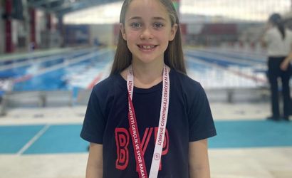 Defne Hüma Şakar, 100 metre kurbağalama yarışında ikinci, 50 metre kurbağalama yarışında ise üçüncülük elde etti.