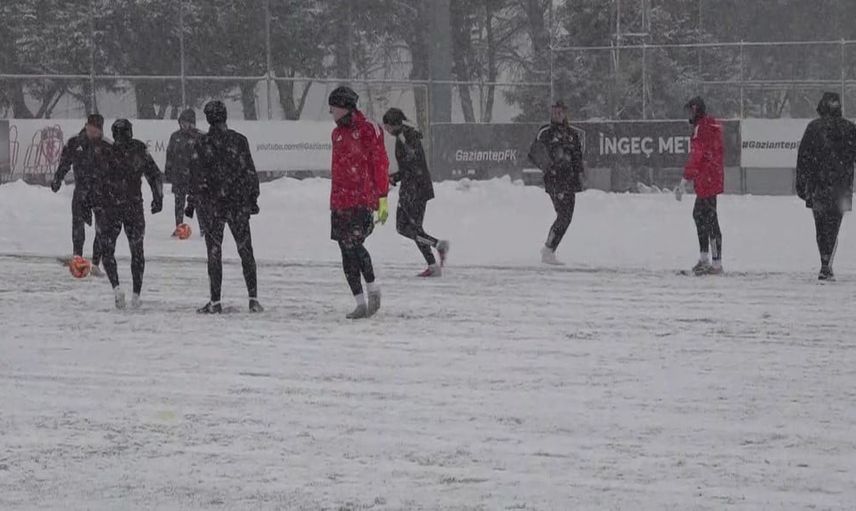Gaziantep FK, yoğun kar yağışı altında Konyaspor maçı hazırlıklarını sürdürüyor