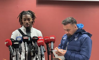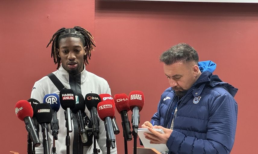 Ziraat Türkiye Kupası A Grubu'nun üçüncü ve son hafta maçında konuk ettiği Çaykur Rizespor'u 5-2 yenen Trabzonspor'un orta saha oyuncusu Muhammed Cham (solda) maçın ardından basın mensuplarının sorularını yanıtladı.