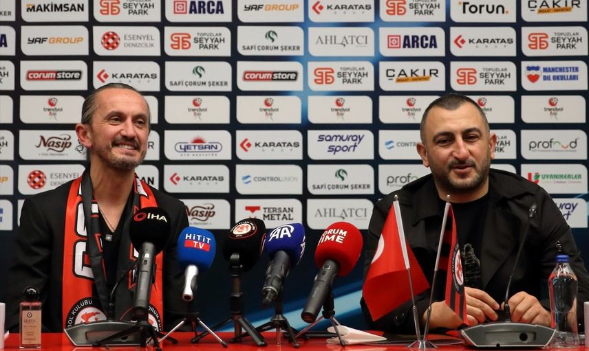 Trendyol 1. Lig ekiplerinden Ahlatcı Çorum FK, teknik direktörlük görevine getirilen Tuncay Şanlı (solda) ile sözleşme imzaladı. Şanlı için Çorum Şehir Stadı'nda Çorum FK Başkanı Oğuzhan Yalçın'ın (sağda) katılımıyla imza töreni düzenlendi.