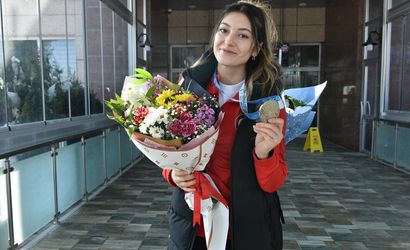 Avrupa Havalı Silahlar Şampiyonası'nda kadınlar 10 metre havalı tüfek solo kategorisinde gümüş madalya kazanan milli atıcı Damla Köse, Erzurum'da çiçekle karşılandı.