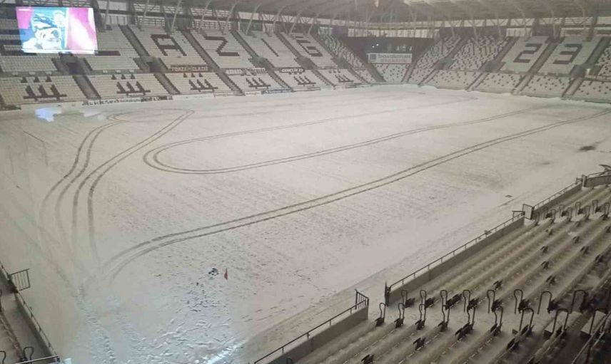 Ancak kar yağışının yeniden etkisini arttırmasıyla zemin tekrar beyaza büründü. Ekipler yeniden sahayı temizleme çalışmalarına başladı ve maç saatine kadar stadyumun hazır hale getirilmesi için çalışılacağı bildirildi.
