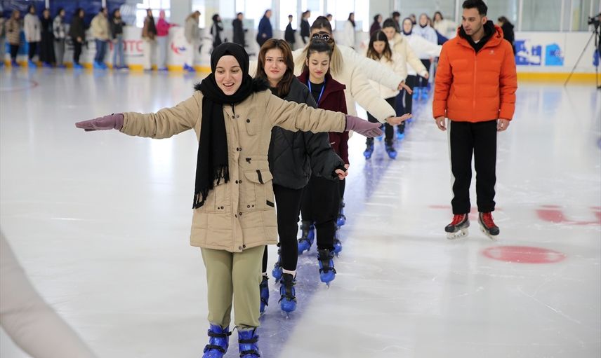 Gençlik ve Spor Bakanlığı Kredi ve Yurtlar Genel Müdürlüğünce Erzurum'da düzenlenen "Kış Sporları Kampı"na katılan 45 şehirden kız 120 üniversite öğrencisi, olimpik buz pistinde kış spor branşlarıyla tanıştı.