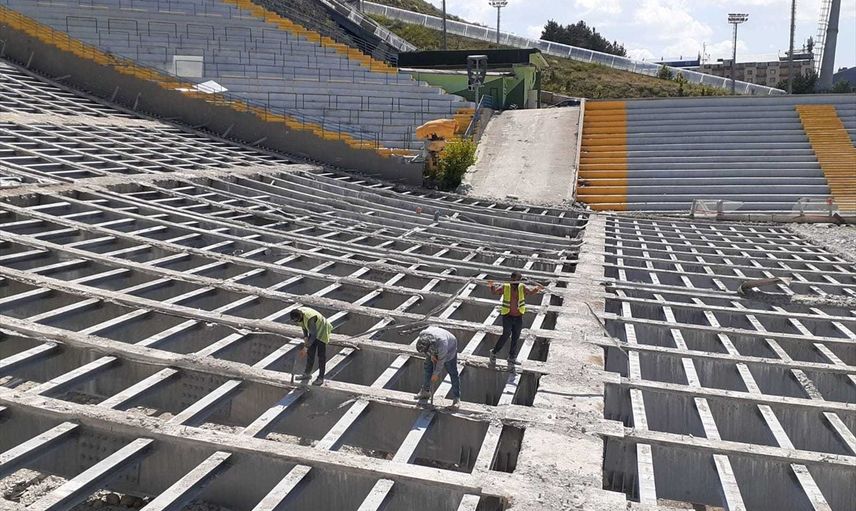 Türkiye'de tek olan Erzurum'daki kayakla atlama kulelerinde zemin tadilatı sonrası ahşap pist çalışmaları devam ediyor.