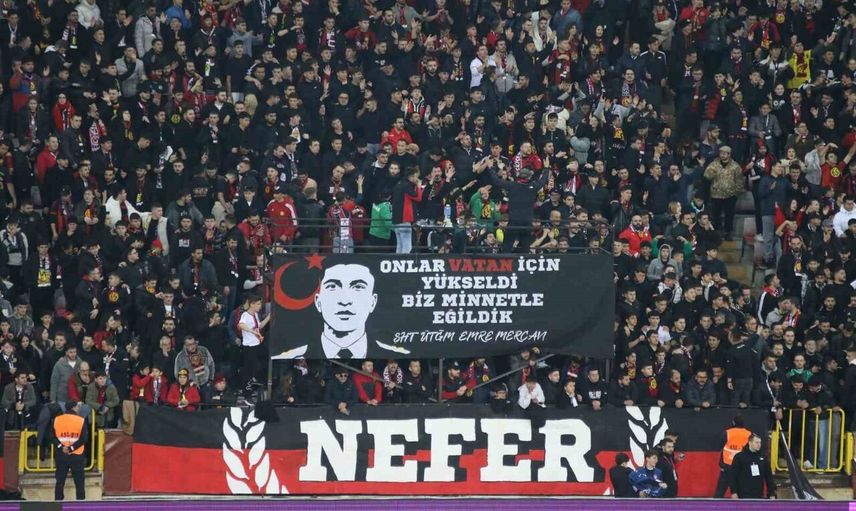 Azerbaycan’dan dönüşte Gürcistan’da düşen askeri kargo uçağında şehit düşen Emre Mercan'ı unutmayan taraftarlar, stattaki pankartta Onlar vatan için yükseldi, biz minnetle eğildik sözünü ve Mercan’ın fotoğrafını sergiledi.
