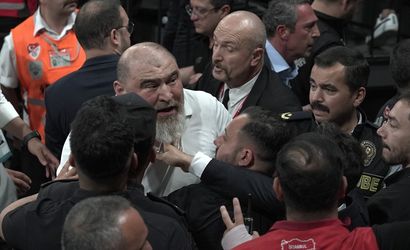 Türkiye Sigorta Basktebol Süper Ligi play-off final serisi dördüncü maçında Beşiktaş Fibabanka ile Fenerbahçe Beko, Basketbol Gelişim Merkezi'nde karşılaştı. Derbinin son anlarında salonda gerginlik çıktı. Siyah-beyazlı taraftarların küfürlü tezahüratının ardından Fenerbahçe Kulübü Başkanı Ali Koç (ortada), saha kenarından yöneticilerin bulunduğu locaya yöneldi.