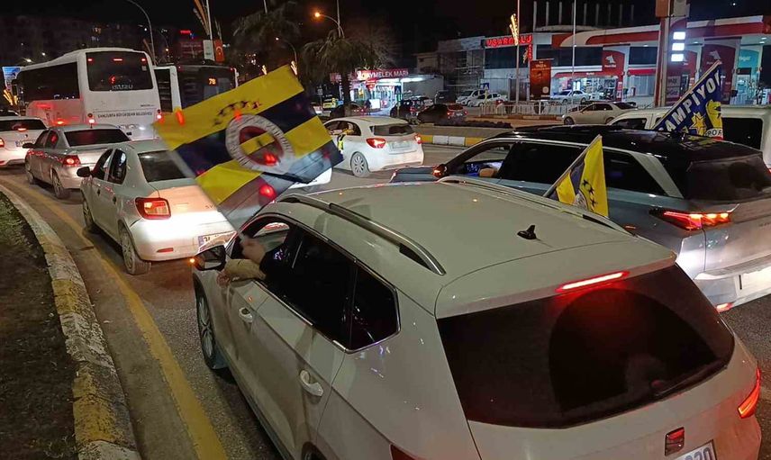 Konvoy ve meşaleli kutlamalar şehir merkezini sardı