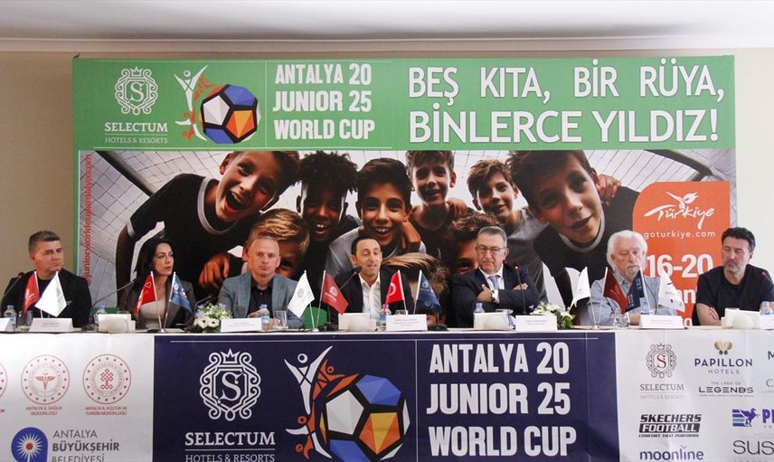 Çocuk futbolunun önemli organizasyonlarından Selectum Junior World Cup Antalya'nın (JWCA) ikincisi Antalya'da düzenlenecek. Turnuva kapsamında Belek turizm merkezinde bulunan Selectum Noa Belek otelde basın toplantısı düzenlendi. Basın toplantısına Gençlik ve Spor Bakanlığı Uluslararası Organizasyonlar ve Dış İlişkiler Genel Müdürlüğü Spor Turizmi Daire Başkanı Volkan Burak Mumcu (ortada), Antalya Gençlik ve Spor İl Müdürü Yavuz Gürkan (sol 3), Anex Tur İcra Kurulu Üyesi Tayfun Turanlıoğlu (sağ 3) katıldı.