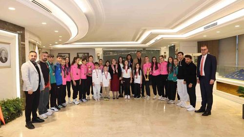 Gaziantep'te dereceye giren sporcular, Fatma Şahin'i ziyaret ederek kazandıkları kupaları ve dereceleri paylaştı.