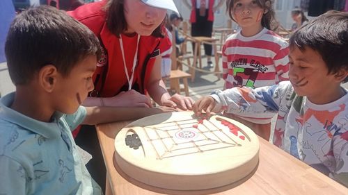 Geleneksel Oyunlar Tırı, depremzede çocuklara Osmaniye'de geleneksel oyunlar oynatmaya başladı.