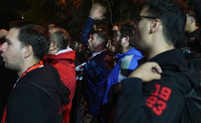 Kırmızı-siyahlı kulüpte genel kurula gidilmeden yönetim içinden birinin başkanlığa geçeceği iddiası üzerine yaklaşık 200 taraftar, Beştepe İlhan Cavcav Tesisleri'ne geldi.