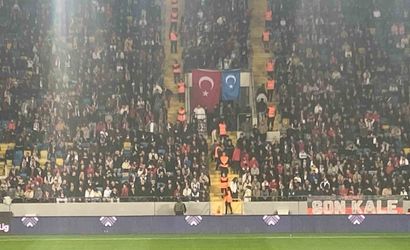Gençlerbirliği taraftarları maraton tribününde klasikleşmiş al bayrağın yanına Doğu Türkistan'ı simgeleyen gök bayrağı astı.