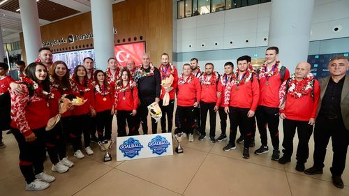 Finlandiya'daki 2025 IBSA Avrupa Şampiyonası'nda altın kazanan Kadın ve Erkek Golbol Milli Takımları İstanbul'a döndü; kupalarını Gazze'ye ve Türkiye'ye armağan ettiler.