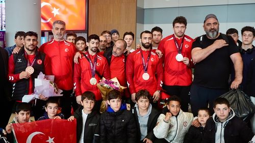 Grekoromen Güreş Milli Takımı, Bratislava'da düzenlenen Avrupa Şampiyonası'nda 2. olarak yurda döndü ve sporcular çiçeklerle karşılandı.
