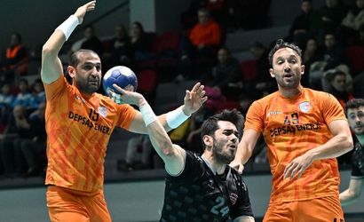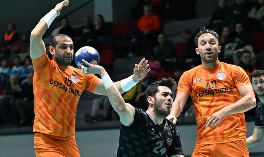 Hentbol Erkekler Süper Lig'in 16. haftasında Spor Toto ile DEPSAŞ Enerji As THF Prof. Dr. Yaşar Sevim Spor Salonu'nda karşılaştı. Bir pozisyonda DEPSAŞ Enerji As oyuncusu Sedat Yıldırım (solda) rakibiyle mücadele etti.