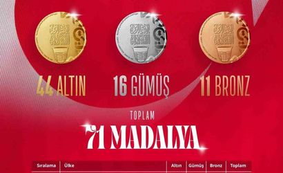 Türkiye: 44 altın, 16 gümüş, 11 bronz