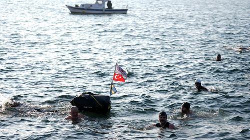İsveçli yüzücü Jari Cennet Tammi, sosyal medyadan tanıştığı 'Sarayburnu Fatihleri' ile İstanbul Boğazı'nda yüzerek Akdeniz hedefini sürdürüyor.