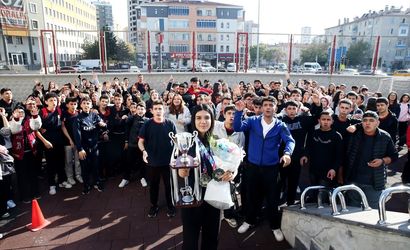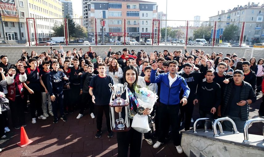 Şampiyona sonrası memleketine dönen Uzunçakmak, okuldaki arkadaşları ile öğretmenleri tarafından konfetiler ve alkışlar eşliğinde tezahüratlarla karşılandı.