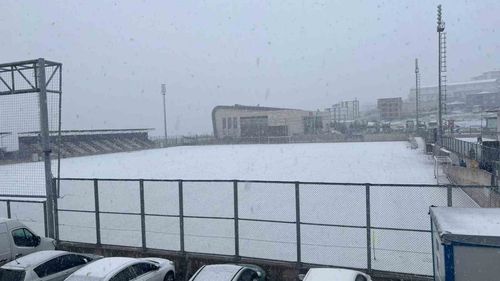 Kocaeli 2. Amatör Lig’de Dilovasıspor ile Mollafeneri karşılaşması, yoğun kar yağışı nedeniyle 26. dakikada 1-0 ile yarıda kaldı.
