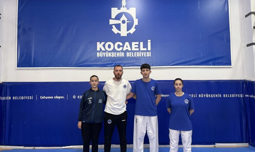 Kocaeli Büyükşehir Belediyesi Kağıtspor'un milli karatecileri Melis Uran (solda), Azra Koyun (sağda) ve Bilal Yusuf Uçak (sağ 2), Balkan Şampiyonası ile Karadeniz ve Hazar Ülkeleri Şampiyonası'nda uluslararası alanda ilk madalyalarını kazanmayı hedefliyor.