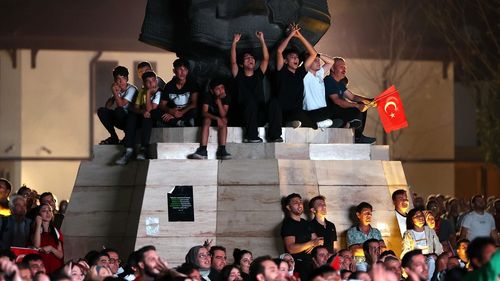 Konya Selçuklu'da Kılıçarslan Kent Meydanı'nda kurulan dev ekranda A Milli Erkek Basketbol Takımı'nın EuroBasket 2025 finali izlendi.