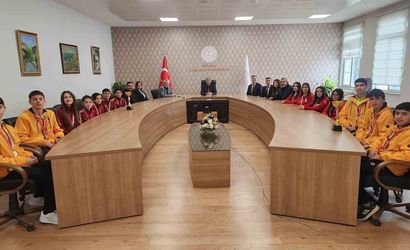 Ziyarette her okuldan 5’er öğrenci olmak üzere toplam 15 öğrenci, 4 öğretmen ve 3 idareci Müdür Yılmaz’ı ziyaret etti. Öğrenciler elde ettikleri başarılar ve hedefleri hakkında bilgi verirken, Mustafa Yılmaz öğrencilere ve öğretmenlere tebriklerini iletip Türkiye Finalleri’nde başarılar diledi.