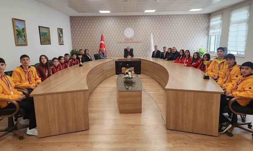 Kütahya İl Milli Eğitim Müdürü Mustafa Yılmaz, Okul Sporları Kros müsabakalarında Kütahya’yı başarıyla temsil eden 15 öğrenci, 4 öğretmen ve 3 idareciyi makamında kabul etti.