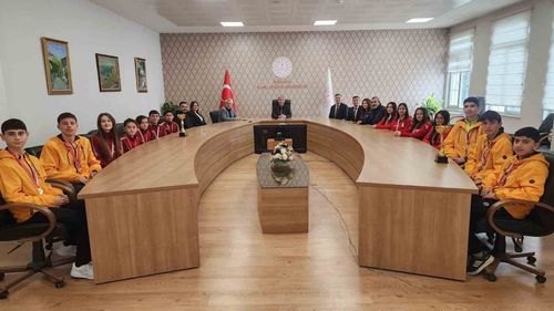 İl Milli Eğitim Müdürü Mustafa Yılmaz, Okul Sporları Kros’ta Kütahya’yı başarıyla temsil eden 15 öğrenci, 4 öğretmen ve 3 idareciyi makamında kabul etti.