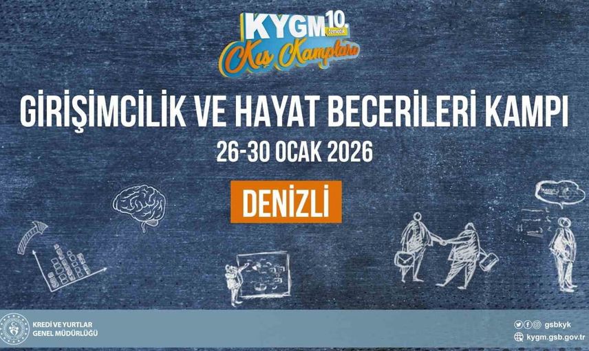 Gençlik ve Spor Bakanlığı'na bağlı Kredi ve Yurtlar Genel Müdürlüğü (KYGM) tarafından düzenlenen Tematik Kış Kampları kapsamında, 'Girişimcilik ve Hayat Becerileri Kampı' 26-30 Ocak 2026 tarihlerinde Denizli'de yapılacak. Türkiye'nin dört bir yanından gelen 150 üniversite öğrencisi, bakanlığın Denizli yurtlarında beş günlük yoğun bir programa katılacak.