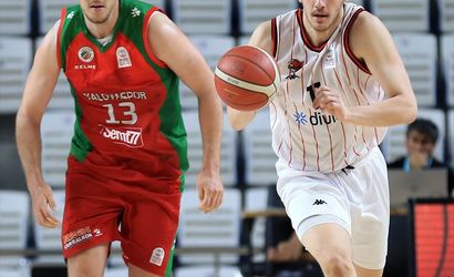 Türkiye Sigorta Basketbol Süper Ligi’nde normal sezonun son haftasında Manisa Basket Divissa ile Semt77 Yalovaspor, Muradiye Spor Salonu’nda karşılaştı. Bir pozisyonda Manisa Basket’ten Fabian White Jr. (sağda) ile Semt77 Yalovaspor’dan Martin Peterka (solda) mücadele etti.
