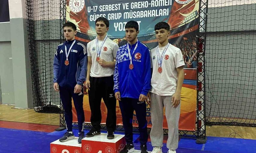 YOZGAT’TA DÜZENLENEN U17 GREKOROMEN GÜREŞ GRUP MÜSABAKALARI’NDA KAYSERİLİ SPORCULAR 1 ALTIN, 2 BRONZ MADALYA KAZANIRKEN 10 SPORCU DA GRUP ELEMELERİNİ GEÇTİ.