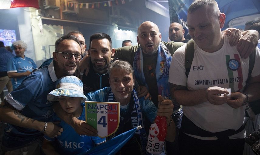 İtalya 1. Futbol Ligi'nin (Serie A) 38. ve son hafta maçında Cagliari'yi 2-0 yenen Napoli, 2024-2025 sezonunun şampiyonu oldu. Napoli taraftarları, kentin farklı noktalarında bir araya gelerek maçı dev ekranlarda izledi.