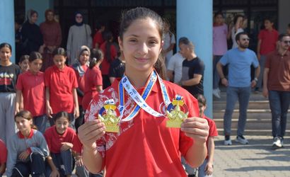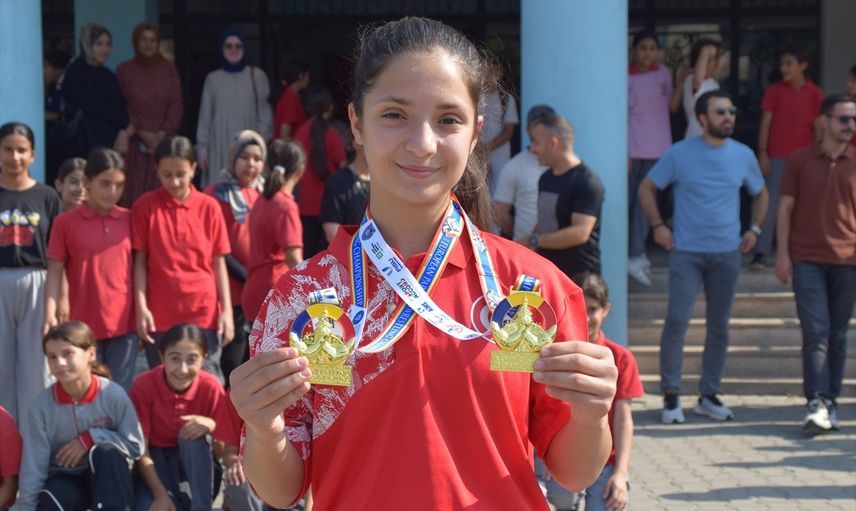 Romanya'da düzenlenen Bilek Güreşi Avrupa Şampiyonası'nda hem sağ hem de sol kolda altın madalya kazanan 14 yaşındaki Nehir Özcan, eğitim gördüğü Manisa'nın Turgutlu ilçesindeki 19 Mayıs Ortaokulu'nda öğretmen ve arkadaşları tarafından coşkuyla karşılandı.