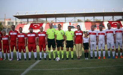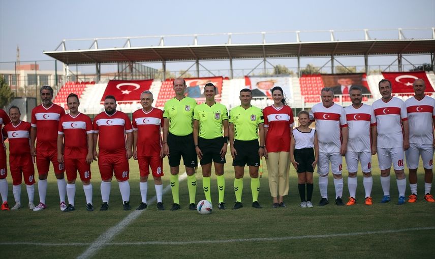 Gençlik ve Spor Bakanı Osman Aşkın Bak (sağ3), Aydın'da genç sporcular ve kent protokolünün katıldığı futbol gösteri maçında forma giydi.