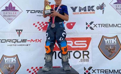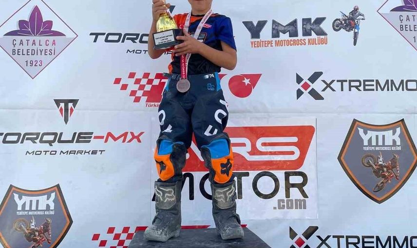 TÜRKİYE MOTOKROS ŞAMPİYONASI’NIN 2025 SEZON FİNALİ HAYRABOLU’DA YAPILIRKEN, 50CC MİNİ KATEGORİSİNDE MÜCADELE EDEN POYRAZ KALENDER, SEZONU GENEL KLASMAN BİRİNCİSİ OLARAK TAMAMLADI. GÖKÇİN ÖDÜL-BURSA/IHA