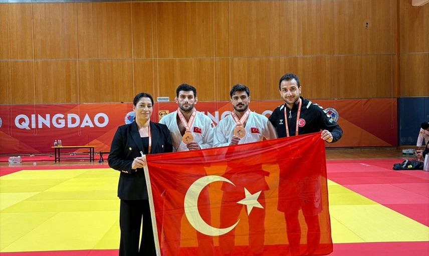 Çin'de düzenlenen Qingdao Grand Prix 2025'te milli judocular Ejder Toktay (sağda) ve Vedat Albayrak (solda), bronz madalyanın sahibi oldu.