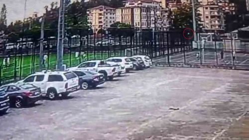 Rize'de Veteranlar Ligi maçında Pazarsporlu Mustafa Bayar'ın kaleye çektiği şut sahanın dışına çıkıp yan taraftaki basket potasına girince saha kahkahaya boğuldu.